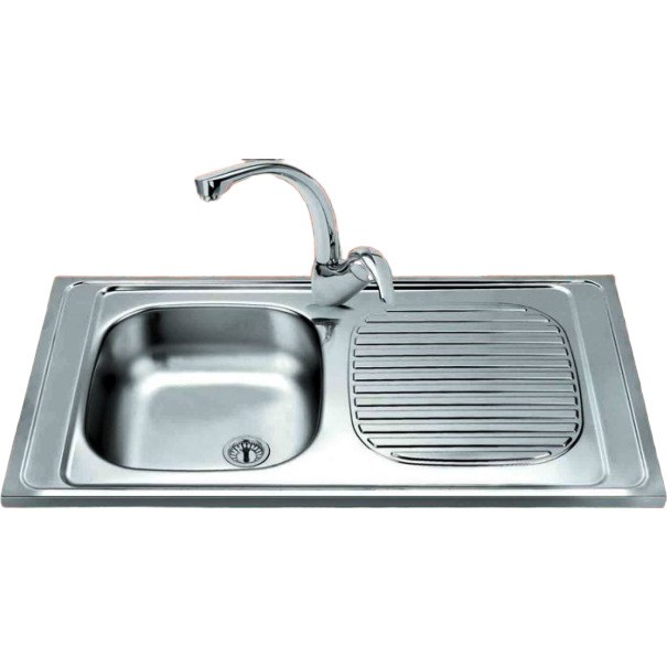 Νεροχύτης ανοξείδωτος επί πάγκου με μία γούρνα με αριστερή ποδία.