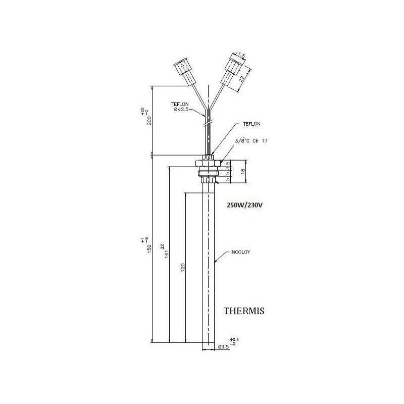 ΑΝΤΙΣΤΑΣΗ ΓΙΑ ΑΝΑΦΛΕΞΗ PELLET 250W 230V Φ9.5Χ140MM ΤΥΠΟΥ ΠΟΥΡΑΚΙ ΜΕ ΡΑΚΟΡ