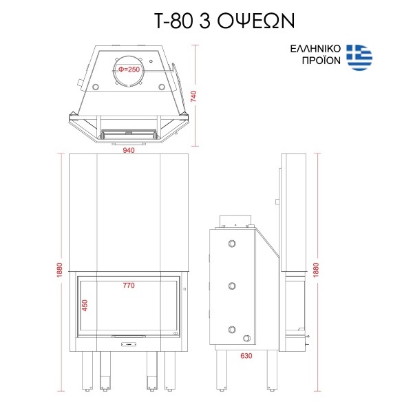 | Διάμετρος καμινάδας (mm) | Φ250 |