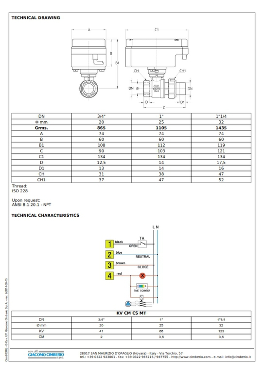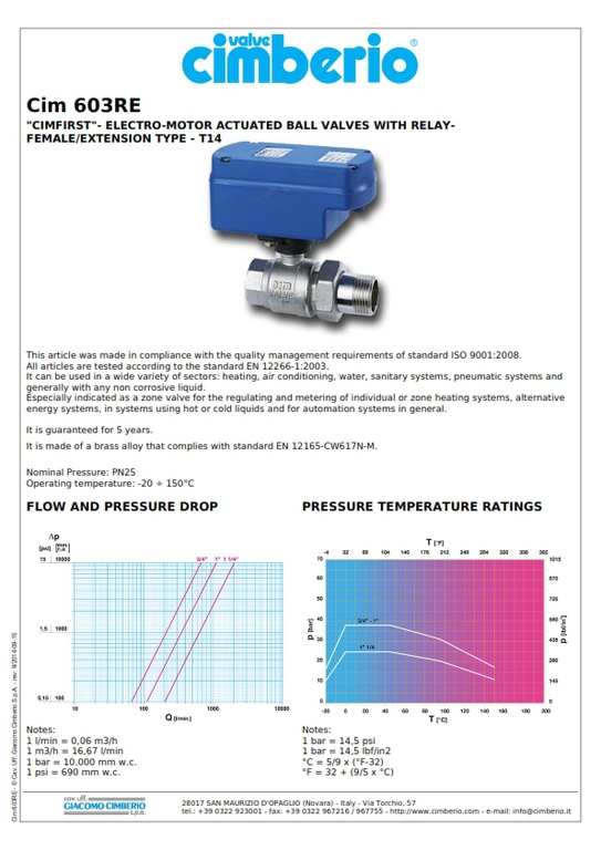 Δίοδη Ιταλική Ηλεκτροβάνα Cimberio 1” CIM 603/RE με 1 ρακόρ CIMBERIO