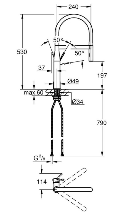Grohe Essence Ψηλή Μπαταρία Κουζίνας Πάγκου με Ντουζ 30294000 ποσότητα